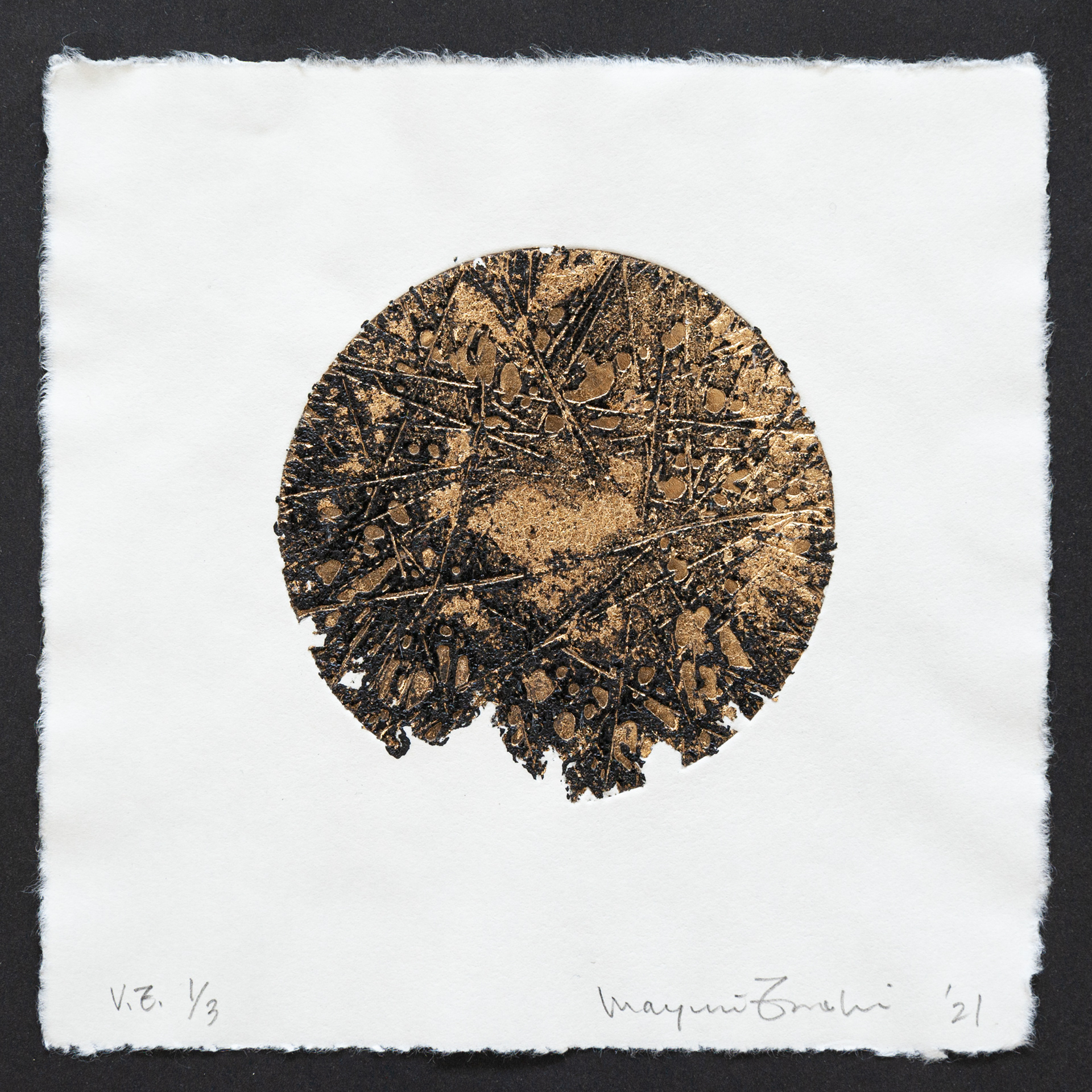 2021, etching, chine collé with gold leaf on Japanese washi paper, image size:Φ10cm, paper size: 18x18cm, V.E.1/3, private collection