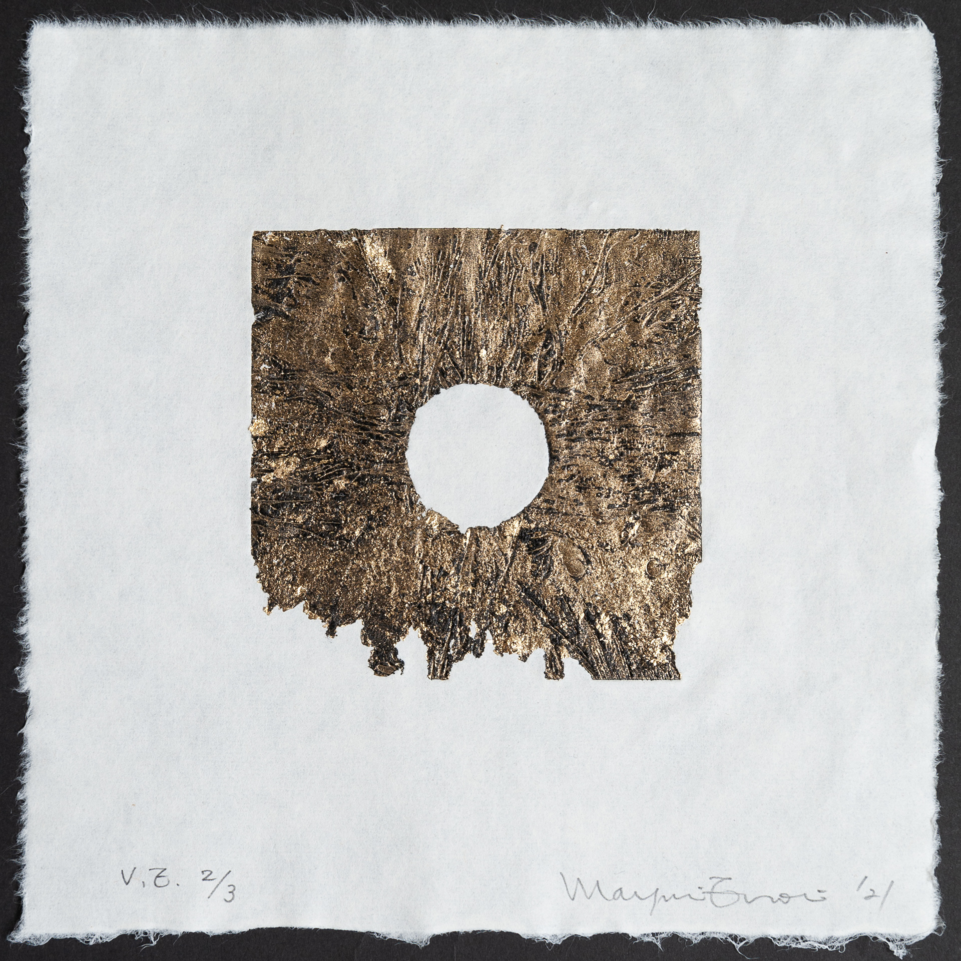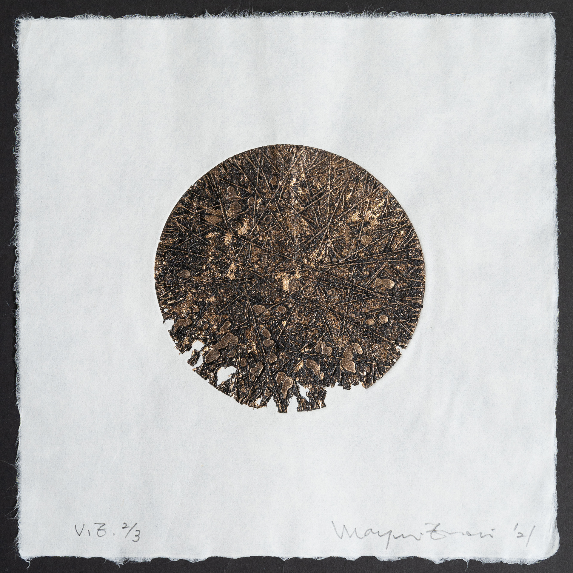 2021, Etching, chine collé, metal leaf, Japanese washi paper,Paper size: 20x20cm, Image size: Φ10cm, V.E. 2/3, private collection